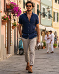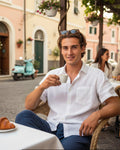 Há uma razão para o linho ser usado há séculos ao longo da costa europeia: ele respira quando as temperaturas sobem, fica mais macio a cada uso e carrega uma elegância natural que os tecidos sintéticos jamais conseguirão igualar. Esta é a camisa de verão bem-feita.