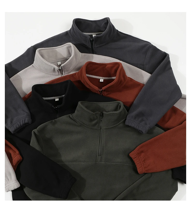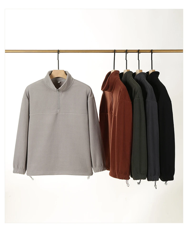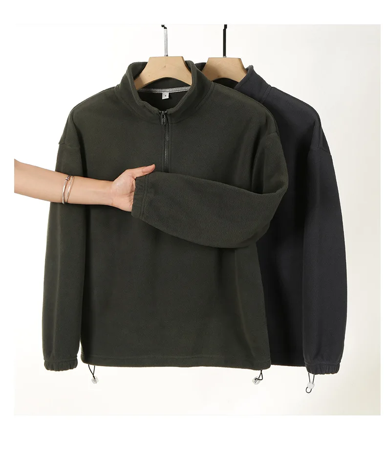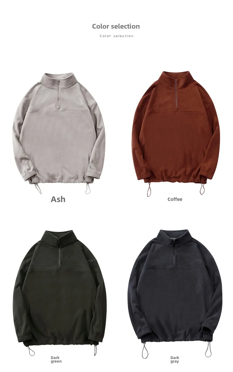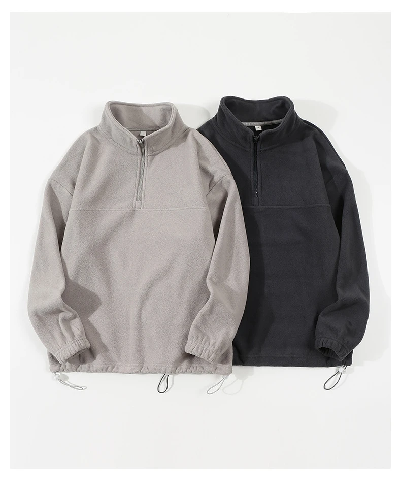 Men's and Women's New Arrival Winter Fashion Half Zipper Stand Collar Hoodie Coat Loose Casual Double-sided Fleece Sweatshirts
